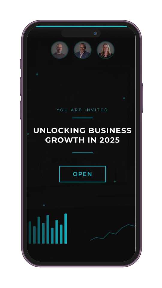 Professional conference invitation with keynote title, agenda with speakers, speakers section with photos and descriptions, dress code, and registration form.